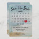 "Salve a Data" calendário com coração vermelho em uma praia de oceano aquarela com estrela do mar para um casamento próximo.