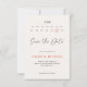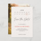 Estes cartões de anúncio são a forma perfeita de mostrar a sua história de amor, ao mesmo tempo que servem como um lembrete gentil para os seus entes queridos marcarem os seus calendários. Com a opção de personalizar cores de texto, fotos traseiras e seus detalhes de casamento, essas cartas elegantes e minimalistas certamente deixam uma impressão duradoura. Lembre-se depois de personalizar para clicar na opção editar para abrir o editor para que você possa mover o gráfico circular pelo dia da semana que você precisa se seu casamento não for em uma sexta-feira.