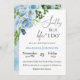 Convite Caligrafia Algo Chá de panela Floral Azul