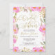 Convite Caligrafia chá de panela rosa e Dourada Floral