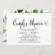 Este cartão de convite para casais florais para caligrafia do sul é perfeito para um chá de casamento moderno. A design apresenta uma tipografia branca e negra russa, mas elegante, com flores brancas de aquarela lindas no suporte.