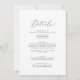 Esta delicada caligrafia de cinza escura, tudo em um convite de casamento, é perfeita para um casamento moderno. A design romântica minimalista apresenta uma magnífica e elegante tipografia de cinzas escuras num fundo branco com um aspecto simples e limpo. Salve o papel, incluindo os detalhes na parte traseira do convite de casamento, em vez de em um cartão de cercado separado. Inclua as informações de RSVP também se seu convidado estiver respondendo eletronicamente (opcional).