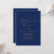 Este delicado convite para janto de ensaio de marinhos de caligrafia em ouro é perfeito para um ensaio de casamento moderno. A design romântica minimalista apresenta uma magnífica e elegante tipografia amarela ouro champanhe num fundo azul marinho com um aspecto simples e limpo.