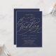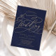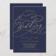 Este convite de casamento para marinhos de caligrafia em ouro romântico é perfeito para um casamento simples. O clássico moderno design apresenta espirais de rico e turbilhões brancos com belíssima e elegante tipografia de folha de ouro de champanhe com letra falsa. Nota: Este design não apresenta folha de ouro real. É um gráfico de alta qualidade feito para se parecer com folhas de ouro.