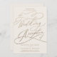 Este convite romântico à recepção de casamento de marfim de caligrafia em ouro é perfeito para uma simples festa de elopemento poste. O clássico moderno design apresenta espirais de rico e turbilhões brancos com belíssima e elegante tipografia de folha de ouro de champanhe com letra falsa. As placas RSVP são vendidas separadamente ou você pode adicionar informações RSVP à parte traseira da placa.