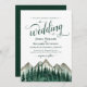 Este belo convite para o casamento é a combinação perfeita de encanto rústico, elegância clássica e comodidade moderna. Apresenta uma paisagem alpina robusta com picos cobertos de neve e um profundo bosque verde de pinheiros. A elegante inscrição no script tem florescimento e inchaço dando a ela um rico e sensação elegante, enquanto a seção de detalhes e o código QR no verso facilitarão para seus convidados obter as informações de que precisam e RSVP on-line. Perfeito para um destino ao ar livre ou em uma montanha, e uma maneira maravilhosa de convidar sua família e amigos para compartilhar sua alegria no seu dia especial!