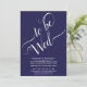 Este belo convite para o casamento é simples e elegante. O design azul e branco do marinho apresenta a caligrafia do rico lendo "a ser Wed" na parte superior 2/3 da canvas com o texto simples abaixo. Design moderno minimalista.