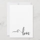 Este cartão combina elegância com simplicidade. Ele apresenta gráficos de tipografia que dizem "Recepção de Casamento" e "e" que foram renderizados em uma linda fonte de caligrafia com redemoinhos e floreios elaborados. No verso, a mesma fonte foi usada para criar uma imagem que representa a simples palavra "amor". Todo o texto editável aparece em uma tipografia versátil sem serifa que pode ser alterada se desejar. Você pode mudar a cor do fundo para qualquer cor que preferir. // 32 //