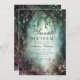 Uma ilustração com uma aquarela esbranquiçada da folhagem esmagadora em verde esmeralda e mauve e roxo, brilhante com luzes de fadas e poeira mágica, decora este primavera de verão outono doce 16 convite com um tema de floresta encantado. Um convite elegante e moderno para um conto de fadas do décimo sexto aniversário que apresenta sotaques clássicos de caligrafia. Perfeito para raparigas e famílias que adoram o cenário florestal de conto de fadas, o tema da floresta de fadas ou do jardim de fadas e o verde esmeralda, o mauve e o ouro.