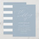 Convide convidados para a celebração do casamento com nossos convites para casamento da Calliografia Minimalista. Os simples e elegantes convites para o casamento mostram os detalhes do casamento em branco, acentuados por lindos escritos caligráficos contra um azul claro. A parte traseira apresenta faixas claras, azuis e brancas. A design faz parte da nossa coleção de casamento da Calliografia Minimalista.