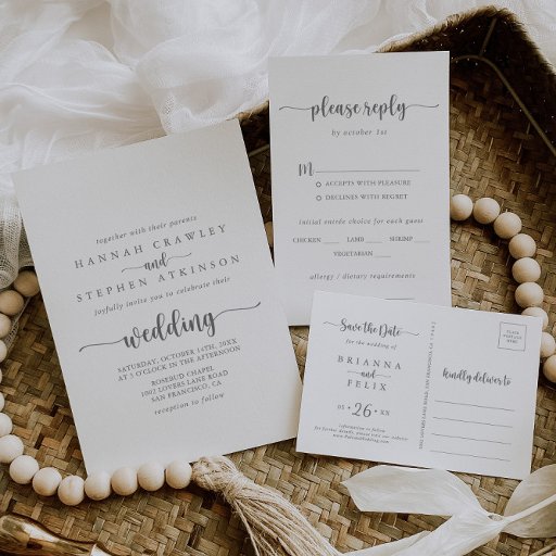 Convite Caligrafia Minimalista Silver Weding Breakfast