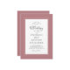 Rosa empoeirado empoeirado e design de casamento branco apresenta caligrafia moderna e roteiro em cinzas de carvão organizadas em uma bela fronteira de rosa poeirentos. A fronteira é acentuada por uma elegante fronteira branca. Um modelo moderno para data e ano complementa o design único de caligrafia e os primeiros nomes do casal. [NOTA: a exibição da data de casamento, conforme mostrado, usa o bar vertical ou a linha que pode ser encontrada acima do \ em um teclado ou no seu dispositivo inteligente com os caracteres especiais. Você também pode personalizar com qualquer outro personagem de sua escolha.] A parte traseira da placa é um rosa poeirento sólido. Envie um email para invitationsuites@gmail.com com perguntas ou solicitações personalizadas.