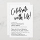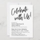 Neste design simples, as palavras-chave "Celebre conosco!" foram renderizadas em uma fonte de letra manuscrita e adicionadas como um arquivo de imagem gráfica. Todo o restante do texto é editável e usa uma fonte versátil com serifa que você pode editar como quiser. A parte traseira apresenta "Sr & Sra" na mesma fonte moderna; isso pode ser removido se você preferir ter apenas um fundo simples ou desejar adicionar algo diferente. Todas as camadas foram adicionadas separadamente e deixadas desbloqueadas para lhe dar o máximo controle de design; edite esta aparência tanto quanto você precisar e por favor não hesite em entrar em contato comigo se você precisar de assistência com o processo. // 105 // Desenhado por Melody Watson para Paper Muserie.