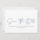 Este moderno, porém elegante, salvará o lançamento da data com um simples fundo branco e um grande script "Salvar a Data" em azul marinho. A parte traseira da placa é vazio para que você possa adicionar mais texto e/ou fotos, se desejar. **TODAS as cores são personalizáveis - cor de fundo, cor do texto, até mesmo cor do script de caligrafia! Basta clicar em "personalizar design mais" no menu suspenso.**