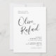 Caligrafia Negra Simples Elegante Este elegante convite simples com caligrafia moderna é perfeito para um casamento moderno. Todo o texto pode ser alterado por si só.