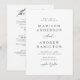 Elegante, convites de casamento tudo em um com seus nomes e informações da cerimônia de casamento na frente em letras negras com um fundo branco. Um roteiro de caligrafia moderno completa o olhar desse versátil convite de casamento preto e branco. Personalize a parte traseira dos convites para casamento por caligrafia com detalhes de casamento, como informações de recepção, acomodações de hotel, instruções de RSVP e site de casamento. Adicione o link desejado do site de casamento ao modelo de Código QR fornecido para que seus convidados possam facilmente RSVP on-line e exibir informações adicionais sobre o casamento. Este convite de casamento de código QR preto e branco é perfeito para casamentos formais e casuais de qualquer estação.