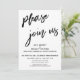 A distinção deste conjunto se deve à fonte moderna de caligrafia manuscrita usada para as frases de destaque. Nesta peça, a fonte manuscrita foi usada para criar um gráfico que representa as palavras "por favor, junte-se a nós". Use os campos do modelo para adicionar seus detalhes pessoais e tornar este design moderno e único. O fundo branco pode ser alterado para qualquer cor que você preferir. Por favor, entre em contato para qualquer solicitação especial ou para obter ajuda na personalização. // 100 //