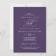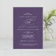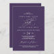 Este convite romântico para casamento roxo de caligrafia é perfeito para um casamento simples. O clássico design moderno apresenta espirais ricos e turbilhões brancos com magnífica e elegante tipografia à mão num fundo roxo de ameixa.