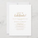 Esta simples caligrafia | o convite de festas de celebração de vamos de ouro é perfeito para um noivado elegante, solteira, reforma ou qualquer evento ou festa. O clássico design apresenta tipografia rústica de branco e ouro com um toque moderno minimalista.