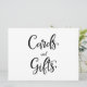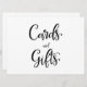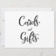 Um simples e belo letreiro de "Cartões e presentes" em caligrafia. Este letreiro feito à mão pode ser usado para adicionar um estilo moderno em recepções de casamento.