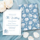 This wedding invitation is crafted in a romantic, refined style, ideal for celebrating your special day. The subtle dusty blue palette fits well with the winter season, while subtle white accents bring a sense of clarity and elegance. The design features a delicate floral print on the back, complemented by a single, line art blossom on the front that mirrors the artwork behind it, creating a cohesive and artistic look. A calligraphy script title adds a graceful, elevated touch. As a central element of your wedding stationery, this invitation sets the tone for the entire collection with its understated beauty and floral charm. All text elements in this elegant template can be easily edited - names, date, venue, and event details.
