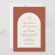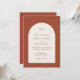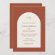 Um convite moderno para casamento, com seu monograma junto com seu dentro de detalhes de um arco colorido creme sobre fundo de ferrugem. Esta simples, mas elegante design com cores do deserto terrestre é excelente para um casamento no estilo boho no verão ou outono.