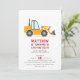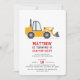 Você consegue cavar! Despeje tudo e vamos celebrar o aniversário do seu filho. O design apresenta um bulldozer amarelo brilhante. Este tema é ideal para crianças de todas as idades. O design é completamente personalizável. Confira a papelaria e presentes coordenados.