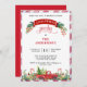 Aprecie amigos e família com este belo convite para festas de Natal ou Feriado com uma fronteira requintada no fundo, com cores d'água pintadas manualmente, biscoitos de festas e doces de festas e árvores de Natal de caminhoneiros vermelhos. No topo da fita vermelha com a palavra "Natal" ou "Feriado", "festa" logo abaixo dela, em lindas caligrafias escritas à mão. Quadro vintage atraente, vermelho e branco, com placa inteira. De volta em vermelho. Coleção com coordenação de produtos disponíveis.