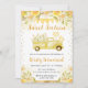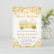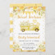 Elegante Watercolor Summer Daisies design com flores amarelas e confete dourado com fundo de faixas amarelas