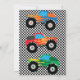 TEMA DE ANIVERSÁRIO DE MENINOS FAST ONE! CAMINHÕES MONSTRO COLORIDOS VERMELHO, VERDE E BRANCO COM PADRONAGEM XADREZ PRETO E BRANCO GROOVY ESTILO RETRÔ EDITÁVEL PARA FESTA DE ANIVERSÁRIO INFANTIL