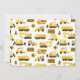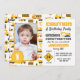 Convite de aniversário de fotos de caminhões de construção giros. Esquema de cor amarelo branco e cinza com veículos de construção, sinais de precaução e padrão de cone de construção em fundo branco. Personalize o texto e a foto!