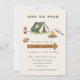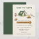 Watercolor illustrated rustic camping themed birthdays party invitation forbids with campfire, tents and smores,