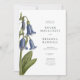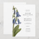 Uma ilustração digital original de campainhas azuis (harebells) no estilo de esboços botânicos vintage é apresentada neste convite.