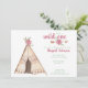 Bonita e divertida, este convite é a forma perfeita de convidar seus amigos e família para a primeira festa de aniversário de sua filhinha. O design apresenta uma coloração d'água pintada manualmente, chichi, setas e flores silvestres com cor de fonte correspondente para todos os detalhes do planejamento da sua festa. A parte de trás apresenta uma textura natural de grãos de madeira lavada em branco.