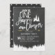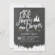 Convite de festas de acampamento da floresta de primeiro aniversario de Chalkboard.