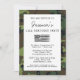 Este convite para o aniversário de fotos da camuflagem é perfeito para familiares militares, assim como escoteiros e entusiastas do exército! O convite apresenta um quadro de camuflagem verde e uma mistura de roteiro moderno e tipografia em apuros rústicos a preto sobre fundo branco. O texto é dividido por uma bandeira dos EUA a preto e branco. No verso, há uma modelo para uma foto personalizada. Personalize este convite de aniversário e torne-o exclusivo para você clicando no botão "Personalizar" e mudando as informações e uma foto para você!