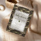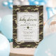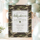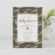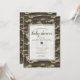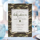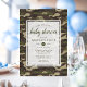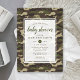 Prepare-se para uma celebração única de chá de bebê com este convite ousado com tema de camuflagem, perfeito para pais que amam o ar livre ou decoração inspirada no militar. Com um padrão clássico de camuflagem verde e marrom, este design define um tom robusto e aventureiro para o chá de bebê de um menino. O fundo rústico de camuflagem adiciona um estilo divertido e distinto, ideal para organizar uma reunião memorável com amigos e familiares. Perfeito para entusiastas da natureza ou qualquer pessoa que queira um chá de bebê com tema ao ar livre ou aventura que se destaque.