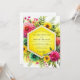 A burst of vibrant summer color creates a joyful and energetic atmosphere. This lush botanical arrangement features a stunning palette of canary yellow, fuchsia, and deep teal. Bold dahlias and sunny blossoms are nestled amongst verdant ferns and foliage, evoking a lively, tropical feel for a radiant union.