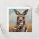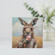 Espalhe a alegria do verão com este cartão de férias encantador e artístico "Canguru Comendo Sorvete". A frente apresenta uma pintura a óleo em estilo impressionista e alta fidelidade, com pinceladas ricas e visíveis, retratando um canguru segurando um cone de sorvete rosa contra um céu suave e ensolarado do outback. Este cartão em formato quadrado é totalmente personalizável; enquanto a arte vibrante causa um grande impacto na frente, o interior é pré-formatado com uma mensagem limpa "Feliz férias de verão!" que você pode facilmente editar ou substituir com sua própria nota personalizada. É uma escolha perfeita para quem procura enviar uma saudação única e artesanal que combina o caráter da vida selvagem com um clima de verão divertido.