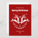 a produção moderna de arte popular de Natal escandinava com aves, ramos, bagas, corações e duas renas saltitantes em tons brancos e vermelhos, com Feliz Natal ou qualquer outra mensagem, perfeita para a festa de Natal