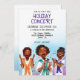 Um trio feminino afro-americano vestido de branco com faixas coloridas individualmente canta louvores para as festas de fim de ano, fazendo um barulho alegre com as mãos, voz e instrumentação.