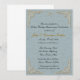 Convite elegante com aparência de relevo, cantos dourados ornamentados e sotaque de corações dourados em fundo mosqueado azul. Os convites vêm completos com envelopes brancos e escolha de papel.