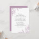 Este belo convite para o casamento apresenta um detalhado design floral em roxo lavanda nos cantos superior esquerdo e inferior direito, criando uma aparência simples e chique. Um esquema de cores branco, lavanda e preto mutado dá a esses convites uma sensação delicada, mas moderna. Simplesmente personalize o texto para seu dia especial! A parte traseira contém um modelo de código QR para simples rsvps e link de site de casamento. Para obter informações sobre design ou produtos, entre em contato comigo (Tracey) em orabellaprints@outlook.com.