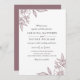 Este belo convite para o casamento apresenta um detalhado design floral em mauve nos cantos superior esquerdo e inferior direito, criando uma aparência simples e chique. Um esquema de cores branco, mauve e preto mutado dá a estes convites uma sensação delicada, mas moderna. Simplesmente personalize o texto para seu dia especial! A parte traseira contém um modelo de código QR para simples rsvps e link de site de casamento. Para obter informações sobre design ou produtos, entre em contato comigo (Tracey) em orabellaprints@outlook.com.
