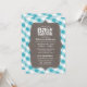 Convites: O país do Sul inspirou convites para Bebês Rústicos projetados com detalhes de chá impressos sob medida em tom claro e branco sobre uma ilustração de textura marrom, em um padrão de gingham branco e turquesa. Correspondência de cartões de agradecimento (itens comprados separadamente):