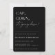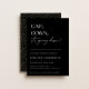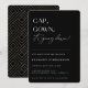 CAP, GOWN, é a hora! Convite contemporâneo para festa de graduação. Design de tipografia moderna em fundos pretos clássicos com padrão geométrico dourado falso.