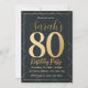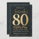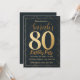 Este cartão de convite elegante apresenta um "80" grande, coberto de ouro, sobre um fundo escuro, fazer-o perfeito para celebrar um marco. O design clássico é acentuado por padrões geométricos sutis, acrescentando um toque de sofisticação. Personalize com os detalhes da festa para concluir este convite para na moda.