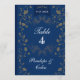 Convite Capa de Livro Dourada Azul-Marinho Número da Mesa