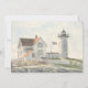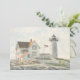 In this watercolor illustration of Nubble Light, brilliant morning light highlights Cape Neddick’s iconic lighthouse in soft yellow. Situated on the bright green grass and gray stone of Nubble Island, Cape Neddick Lighthouse is rendered in stunning detail, from the decorative eaves on the lightkeeper’s house to the light’s white picket fence. An American flag flutters in a stiff ocean breeze, capturing the essence of a refreshing morning on the coast of York, Maine. Visitors and locals alike will appreciate the realism and atmosphere of this watercolor rendering of Nubble Light.