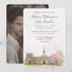 Um convite de casamento em aquarela elegante com uma ilustração atemporal de capela de pedra e tipografia de caligrafia refinada. Projetado em tons neutros suaves com um toque de cor das flores de cerejeira da primavera em uma textura de papel de aquarela sutil, este convite é perfeito para casamentos clássicos, românticos e tradicionais. Ideal para cerimônias de igreja, locais de capela ou casais que buscam um conjunto de papelaria calmo e sofisticado. O texto totalmente personalizável e o espaço para sua foto no verso tornam fácil personalizar para o seu dia especial.